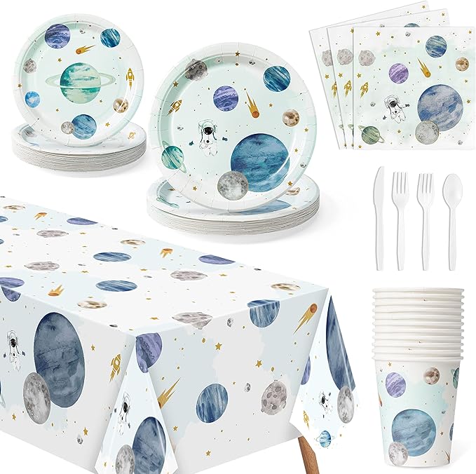 Suministros de decoración de mesa para cumpleaños con temática del espacio exterior